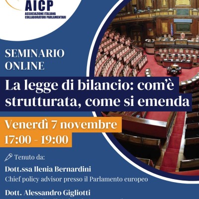 Seminario telematico per gli iscritti AICP sul tema: La Legge di bilancio: com'è strutturata, come si emenda.